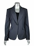 This navy stripe blazer is fully lined and features 1 button front, notched collar, 2 double welt pockets with flap, seam detailing on front and back, and 3 decorative button cuff. Bust 42", Sleeve Length 24", Length 25". Shell: 59% Polyester, 37% Viscose, 4% Elastane. Lining: 100% Polyester. Dry clean. Made in Vietnam.