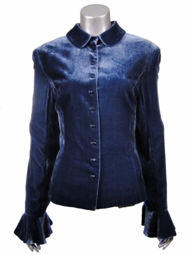 LAUREN Ralph Lauren Women's Velvet Button-down Blouse Misses 14 Persian Blue Review
